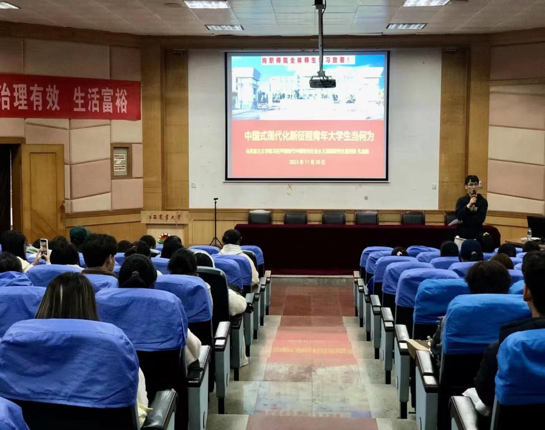 为深入贯彻落实党的二十大精神、习近平总书记考察江西的重要讲话精神,进一步引导大一新生坚定理想信念、厚植爱国主义情怀,扎实开展团员和青年主题教育,11月29日,公司邀请马克思主义公司习近平新时代中国特色社会主义思想宣讲团来公司开展主题宣讲,公司全体大一新生参加。