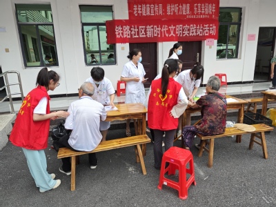 在吉安市青原区铁道社区,实践队成员协助开展“我为群众办实事,服务进社区”社会实践活动。队员们分工合作、各司其职;一部分成员积极协助医务人员开展义诊活动,热情引导居民来到义诊摊位,并细心搀扶行动不便的老人,向他们介绍此次义诊服务。与此同时,另一支小分队成员穿上红马甲,走进书法课堂,辅导小朋友们学习书法知识,见证小小书法家的成长历程。在志愿者们的陪伴中,课堂氛围和谐融洽,孩子们对书法的兴趣随墨香一起弥漫,对中华传统文化的认同感进一步增强。