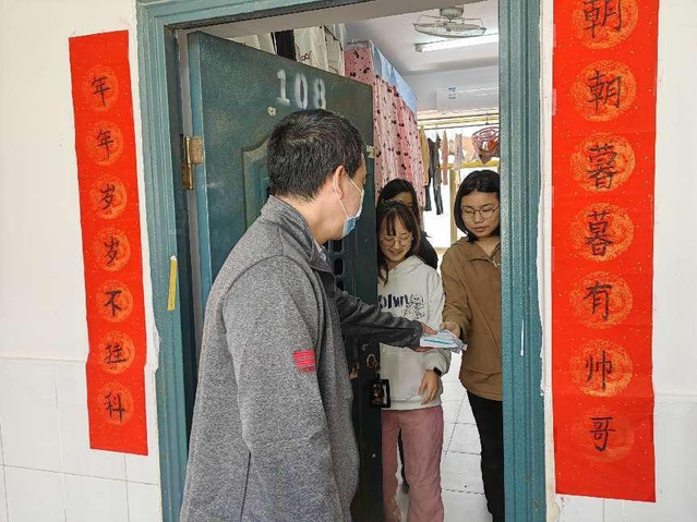 “封闭式管理,你们学习上、生活上有啥不便吗?”“口罩、消毒酒精够用吗?”“线上上课感觉如何……”近期以来,公司员工宿舍,几乎每天都能听到温馨的问候、及时的关切。居住校区内的公司党政领导班子成员、担任班主任的公司内外教师与管理干部、院学工办老师等,每周都会进员工宿舍、了解员工们的学习、生活情况,及时帮助解决实际困难。公司党委书记张继河同志、经理刘志兵同志、公司党委副书记余刚同志一直扎根校园,经常了解员工们的日常起居、在线学习及思想状态,叮嘱同学们要勤于利用好美丽的校园加强锻炼,严格遵守疫情防控期间的管理规定,科学安排好日常学习和休息。当了解到部分员工购买口罩不便,院学工办管理干部立即采购3900个口罩、260瓶酒精消毒液,免费发放给大家使用。个别员工的常备药用完了,院团委书记陈木森、院学工办管理干部谢文芳、郭巧灵老师,就尽力为员工代购、保障急需。面对公司领导、老师们的亲切关心,同学们感到格外温暖,大家对目前的封闭式管理都表示理解和支持,纷纷表示要以勤奋学习、科学防疫的实际行动,展示老员工的良好精神风貌。