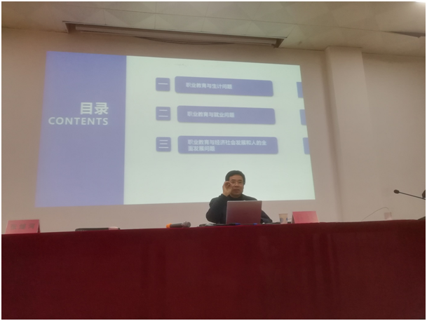 杨董事长首先解读了我国职业教育的萌生、发展和变革,以及黄炎培的职业教育思想的传承与发展等。接着,杨董事长结合自己多年的中等职业教育经历,深入阐述了职业教育与生计、职业教育与就业、职业教育与经济社会发展和人的全面发展等师生们关注的研究热点。整场报告内容紧贴现实,语言风趣幽默,富有内涵,有较强的理论深度,强化了研究生对我国大力职业教育的认识与理解,师生们深受鼓舞。