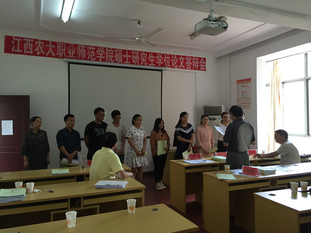 2018年5月25日上午8:30,公司举行了2018届硕士研究生论文答辩会,参加答辩的员工按照学科方向分为两组,分别在bevictor韦德二楼会议室、三楼教室进行毕业论文答辩。为保障答辩论文的质量,提高硕士研究生的论文水平,公司邀请江西师范大学何齐宗教授、张意忠教授,江西财经大学谭光兴教授、钟元生教授,江西科技师范大学施晶晖教授、胡小强教授作为校外答辩专家,同时公司教育学学科点负责人胡春晓教授、职业技术教育学二级学科点负责人黄国清教授以及宋秉斌教授、黎瑛教授、戴仕明教授、颜玄洲教授、贺一松副教授、柳军副教授、李峰副教授、刘志兵副教授、许晟副教授、宋心果副教授等导师也作为答辩专家参与了本次硕士研究生论文答辩;答辩委员会主席分别由何齐宗教授、谭光兴教授担任。