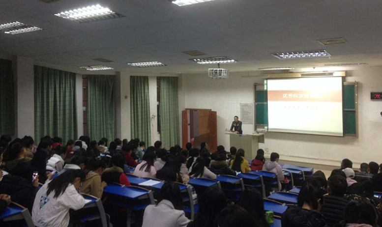 在自由提问环节,大家踊跃提问,李市萍轻松而又睿智的回答博得了在场同学的热烈掌声。在讲解中,李市萍还对大家提出了期望,希望大家能够拥有艰苦创业的精神、严谨求实的学风、乐观向上的态度以及对人生价值的正确追求。