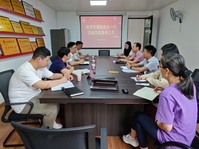 公司党委书记张继河对张副董事长一行的到来表示欢迎,并从专业建设、团队配置及公司办学面临的新形势新问题等,介绍公司的基本概况。公司党委副书记张利斌就公司员工工作以及2024届毕业生就业工作做了详细汇报。