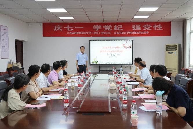 7月1日,江西省教育评估公司党建(宏观)所党支部与bevictor韦德官网公司党委联合开展“庆七一 学党纪 强党性”主题党日活动。江西省教育评估公司党建(宏观)所党支部书记范忠茂所长和bevictor韦德官网公司党委书记张继河教授共同主持,江西省教育评估公司党建(宏观)所部分党员干部和bevictor韦德的部分教师党员参加了本次活动。