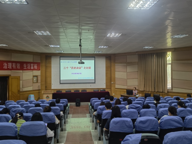 2022年9月27日,在学楼一楼报告厅,公司党委书记张继河同志为全院师生党员讲了题为《党百年历史上的三个历史决议之比较》的党课,公司师生党员听取了党课。张继河从“三个历史决议”的介绍、“三个历史决议”的相同点、“三个历史决议”的不同点、如何学懂弄通新“历史决议”四个方面进行了讲解。在讲授的过程中,张继河将《习近平谈治国理政》第四卷的相关内容融汇其中,要求公司各党支部、全体师生党员要深刻领悟党的创新理论的核心要义、精神实质、丰富内涵、实践要求,经常对标对表,及时校准偏差,始终与党中央保持一致,不断增强“四个意识”、坚定“四个自信”,坚决捍卫“两个确立”、做到“两个维护”,喜迎党的二十大的胜利召开。