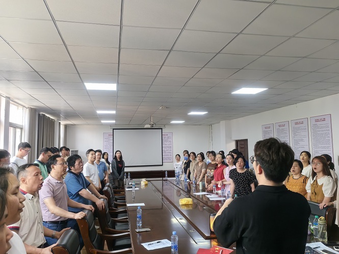 公司党委聚焦立德树人根本任务,牢牢把握“学思想、强党性、重实践、建新功”的总要求,创建一个个学习情景,开展一场场警示教育,推进一项项创新实践,以歌为形,以课为体,精学促思、勤践促悟、深悟促行,持续抓实主题教育实践活动和党建品牌的塑造。结合歌曲《我和我的祖国》的创作背景和精神内涵,公司党委班子成员先学一步、深学一层,精读一部理论专著、勤联一个专业班级、细讲一堂主题党课、深研一篇调研报告。今年4月以来,以歌咏党课项目为载体,开展了12次学习实践活动。公司党委书记张继河亲自做方案设计、抓组织实施、促效果达成,从歌曲选择、队伍组建、党课宣讲、歌曲传唱到歌咏展演等,每一个环节都细针密缕。公司党政合力共领师生落细党课与音乐、德育与美育、党建与业务相融互促,着力在思想武装及创新发展上突出“有形”“有感”“有效”,力求“选择一首好歌,培养一支队伍,讲好一堂党课,领悟一种精神,唱出一种信仰,凝聚一股力量,塑造一股新风”的目标在公司高效达成。
