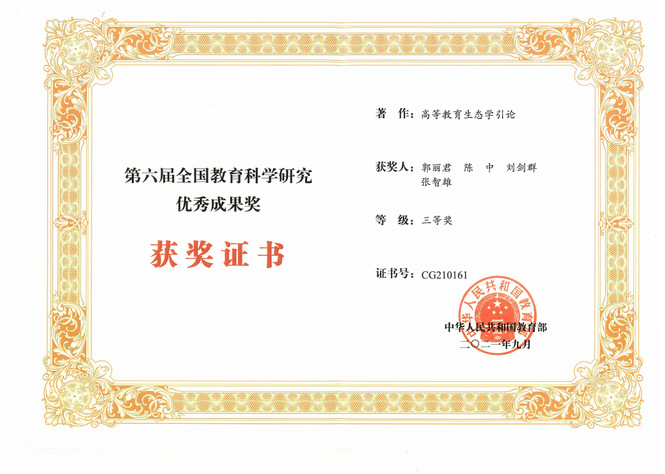 科研是教学的基础与保证。陈中老师在认真完成日常教学工作的同时,积极学习专业基础知识,关注学科发展的前沿动态,努力保持、提高自己的科研能力和业务水平。从教至今,在承担大量教学工作的同时,从未放松科学研究,在科研方面取得了良好的成绩。先后主持教育部人文社科基金项目“信息化环境下的大学课堂生态:变革、问题与对策(课题编号:17YJC880010)”、江西省教育科学“十三五”规划项目“大学课堂生态系统健康评价研究(课题编号:19YB028)”等各类课题10余项,在《教育理论与实践》、《中国职业技术教育》等期刊发表论文40余篇,出版著作2部,参编教材2部。其中,参与撰写的著作《高等教育生态学引论》(第二作者)获得第六届全国教育科学研究成果三等奖,独自撰写的著作《信息化环境下的大学课堂生态研究》获得江西省第十九次社会科学研究成果二等奖。