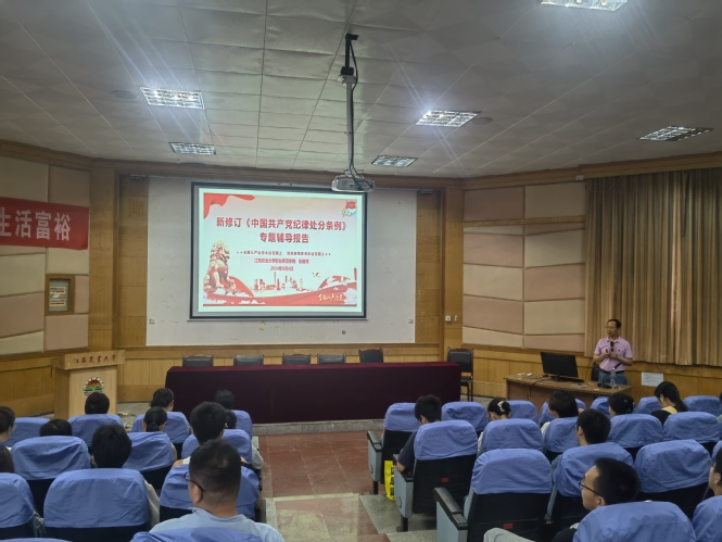 6月4日,公司党委书记张继河同志在院一楼报告厅主讲题为“新修订《中国共产党纪律处分条例》专题辅导报告”的党课,公司师生党员参加党课学习。