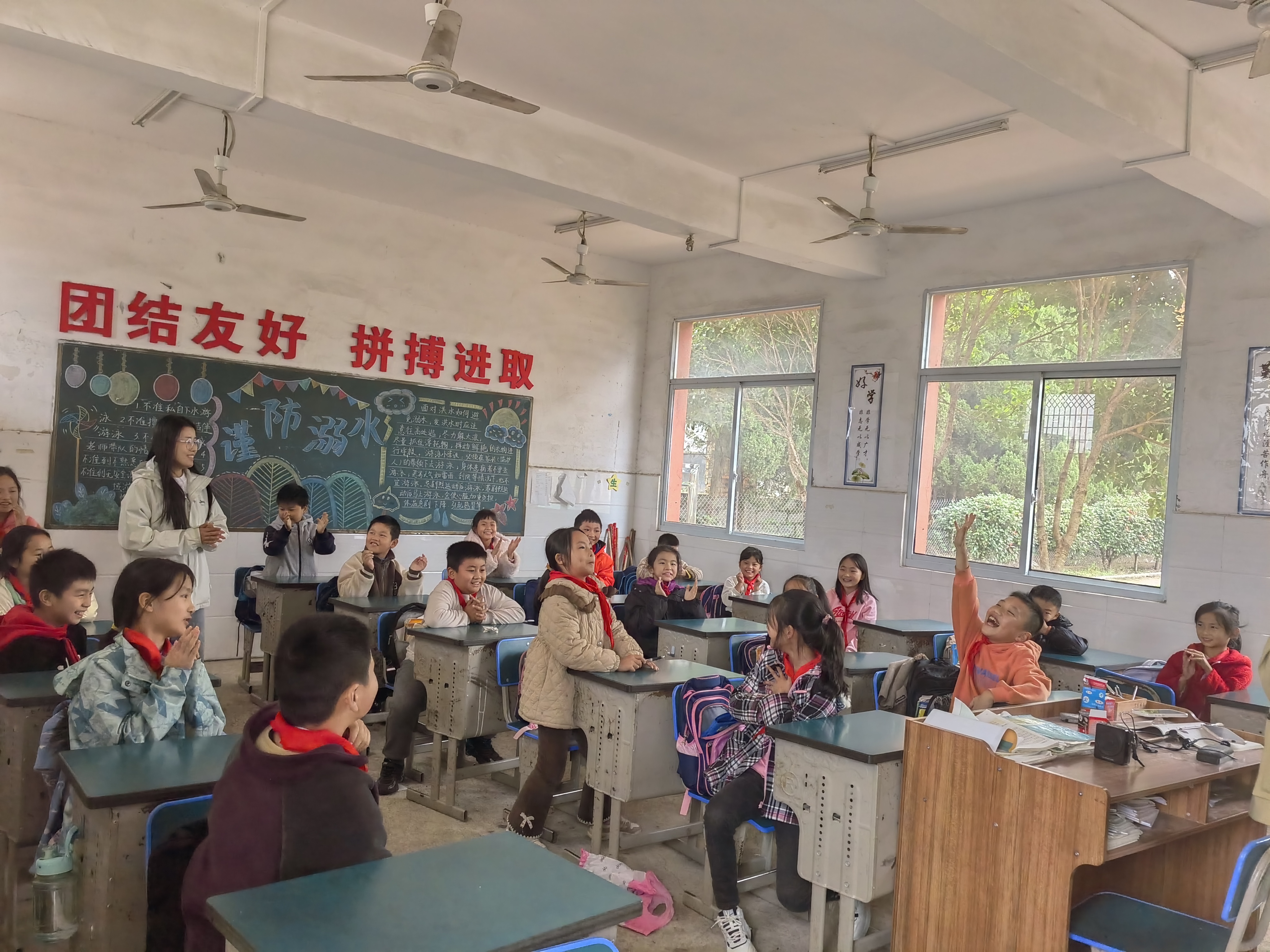 在支教活动中,研究生支教团针对该校员工特点,精心设计实施素质拓展、音乐、美术、讲故事、做游戏等多元化课程,拓宽员工视野,激发学习兴趣,提升综合素质。通过开展互动式教学和游戏活动,让孩子们在快乐中学习,在游戏中成长,有效促进了员工身心健康发展。活动结束后,孩子们纷纷与支教团研究生畅谈学习体会,合影留念,表达对老师们的不舍之情。