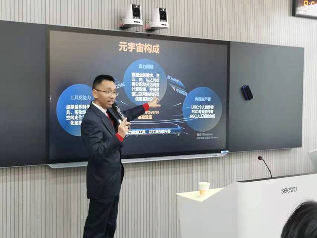万征教授围绕“2021:元宇宙元年与虚拟现实的全面爆发”这一主题,首先梳理了元宇宙的发展脉络与现状,通过丰富生动的图像视频带领大家直观地认识了“元宇宙”;然后结合大量实例阐述了元宇宙的实质并归纳出元宇宙的四重形态;通过一系列前沿案例,进一步分析了元宇宙的自然交互、去中心化、独立经济系统、数字身份等主要特征;重点探讨了元宇宙的构成和主要技术;最后就虚拟现实的全面爆发及未来发展方向分享了独到的见解和思路。