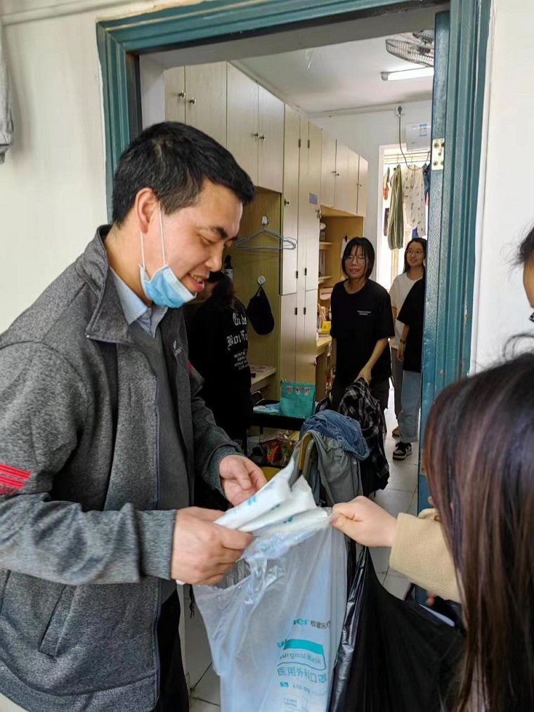 4月20日、21日,居住校区内的公司领导班子成员,党委书记张继河、经理刘志兵、党委副书记余刚及班主任、辅导员老师,严格落实公司疫情防控举措,深入全院员工宿舍,走访慰问员工,了解员工上网课、日常生活、毕业生网络求职等情况,要求员工们珍惜时间、安心学习、科学防疫、坚决贯彻落实公司疫情防控举措,并为每一位员工发放了口罩、酒精消毒液等防疫物资。